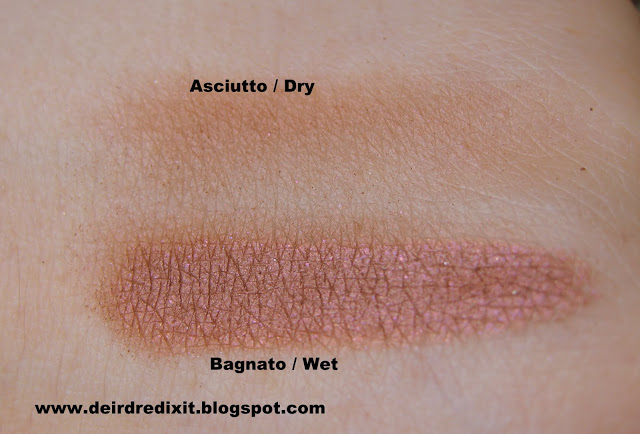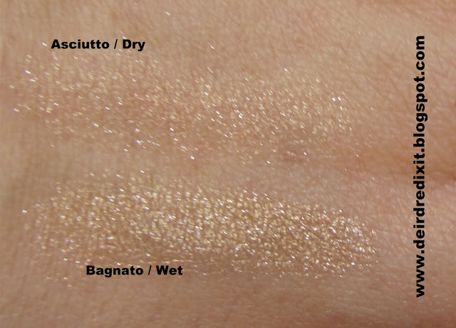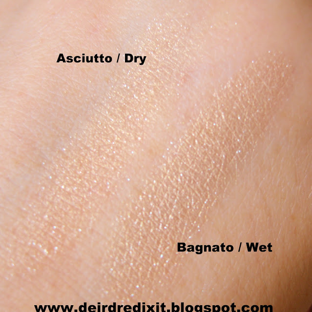 Asciutto dona un look molto naturale e soft, oltre ad essere ottimo come illuminante; bagnato, si intensifica il riflesso dorato.