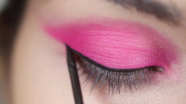Come dicevo all’inizio, essendo una tinta fluo non è adatto alle timide o a chi ama i make up discreti: in ogni caso, per darvi un’idea, vi posto qui sotto una delle foto “ufficiali” della Pupa sull’uso di questo ombretto.. e dopo vi metto la mia interpretazione personale del suddetto make up 🙂