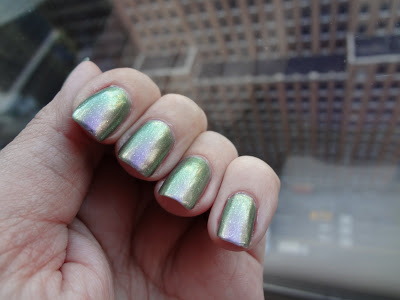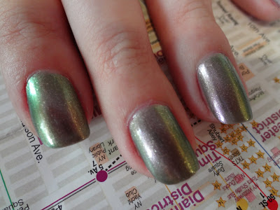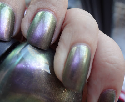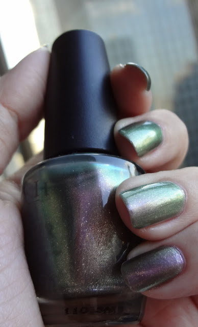 • sai che penso di aver trovato un dupe in uno smaltino Sephora? ce l'ho addosso adesso ed è identico…purtroppo difficilissimo da fotografare, ma è cangiante come qulelo, a volte sembra verde e a volte viola/fucsia leggeri con la base argentata 🙂