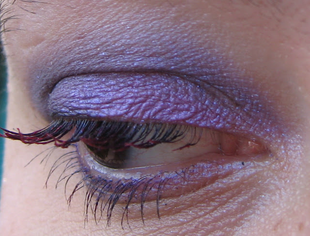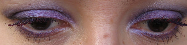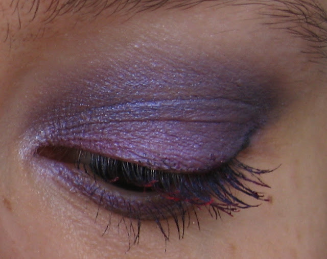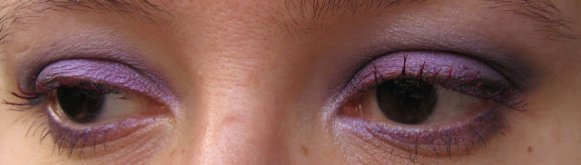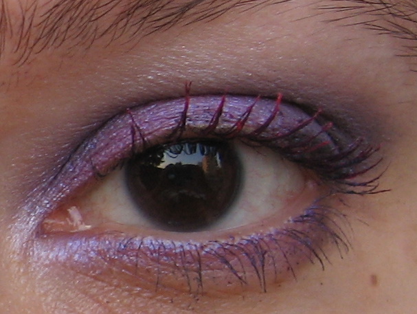Poi ho usato una matita occhi jumbo di Sephora color lilla, che ho steso sulla palpebra mobile come base, sulla quale ho messo l’ombretto lilla della Milani che ho recensito QUI; per la coda dell’occhio ho usato il colour sphere Kiko viola di cui vi ho parlato QUI, sfumandolo molto con il lilla; infine, un po’ di matita nera per allungare l’occhio, del mascara nero e, come tocco finale, il mascara colorato fucsia della Pupa che potete vedere QUI.