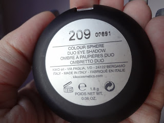 Ogni tanto salta fuori qualche ombretto disperso nel mio beauty: oggi, frugando, è emerso questo Colour Sphere Duo della Kiko, numero 209, un rosa opaco abbinato a un bianco dall’effetto perlescente.