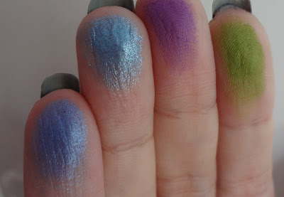 Fino ad ora ho provato solo i fucsia/viola, gli azzurri e il nero: li trovo un pochino polverosi, però hanno una buona pigmentazione (a parte il bianco) anche da asciutti; io in genere tendo a usare tutti gli ombretti da bagnati, con questi non ho ancora provato, ma devo dire che se la cavano bene ugualmente.