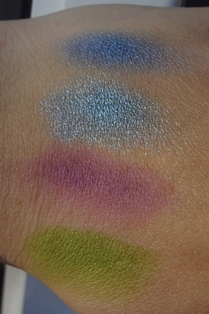 Passiamo ai successivi quattro, i due azzurri shimmer, il viola e il verde mat:
