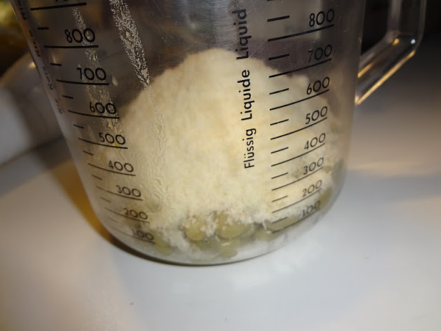 Ne ho tenute da parte una manciata, ho scolato per bene il resto e le ho messe in un contenitore, ho aggiunto una cinquantina di grammi di pecorino grattuggiato (eventualmente va bene anche il grana), e circa un bicchiere di brodo delicato; ho preso il Minipimer (il cielo benedica il suo inventore) e ho frullato in tutto, fino ad ottenere una cremina vellutata e senza grumi (bastano pochi minuti). Occhio a non rendere la cremina troppo liquida, perchè poi vi servirà da condimento per la pasta.