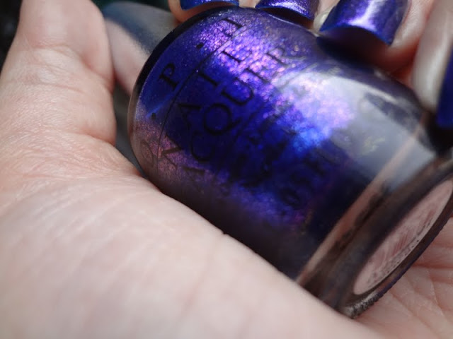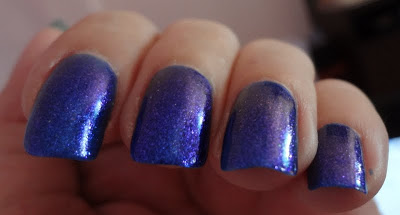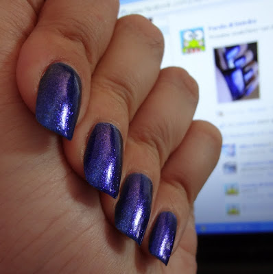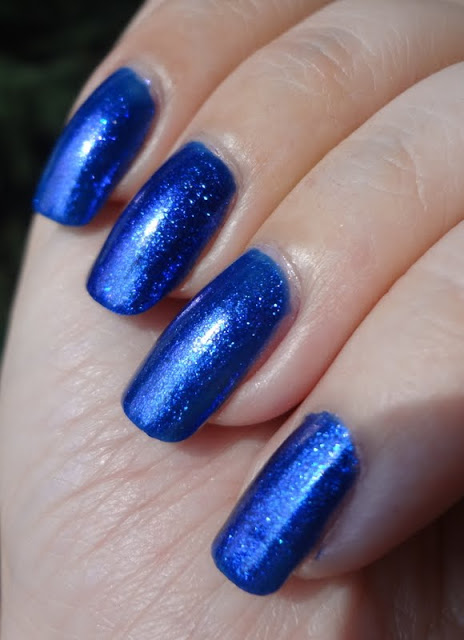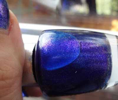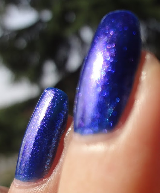 E adesso veniamo a qualche considerazione: è uno smalto molto bello, che però non definirei duochrome.. i riflessi ci sono ma non sono tanto visibili in condizione di luce quanto in condizione di ombra o penombra; sotto la luce diretta del sole appare semplicemente come un blu elettrico molto carico.