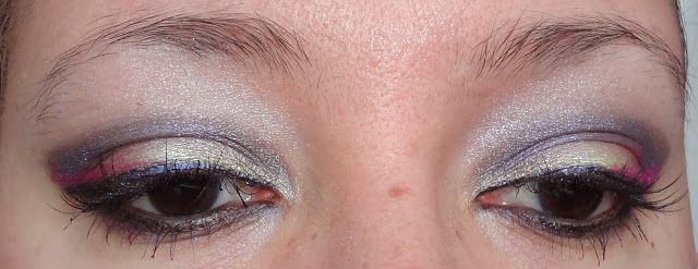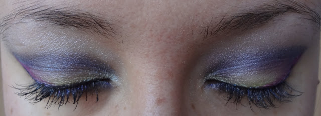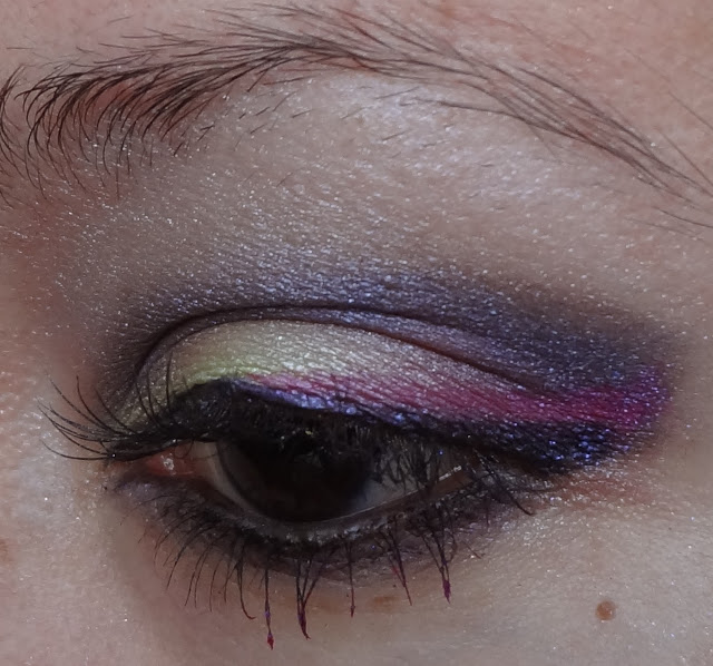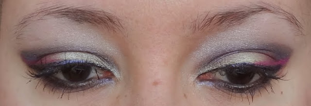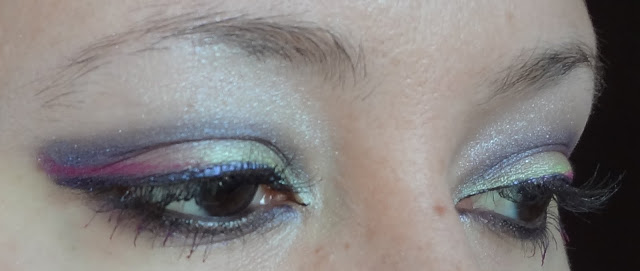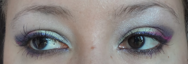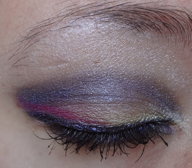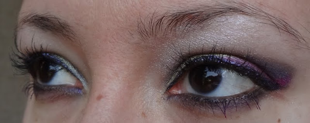 Ho usato un eyeliner viola della Milani Cosmetics e poi non so bene come mi sia venuto in mente, ma ho bagnato leggermente il pennello in punta e ho usato il Color Pop per fare una linea tipo eyeliner sopra la coda di quella viola.