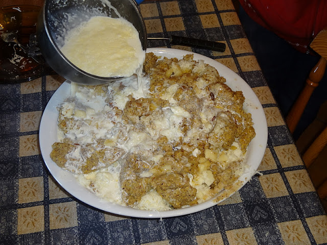 Continuate a “tagliare” la polenta in modo che la panna arrivi bene anche in fondo e impregni il tutto.