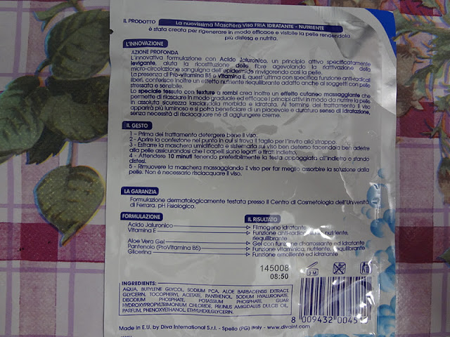 Si tratta di una maschera monouso, estremamente fresca e imbevuta di prodotto: devo dire che ho trovato molto gradevole e rilassante tenerla addosso.