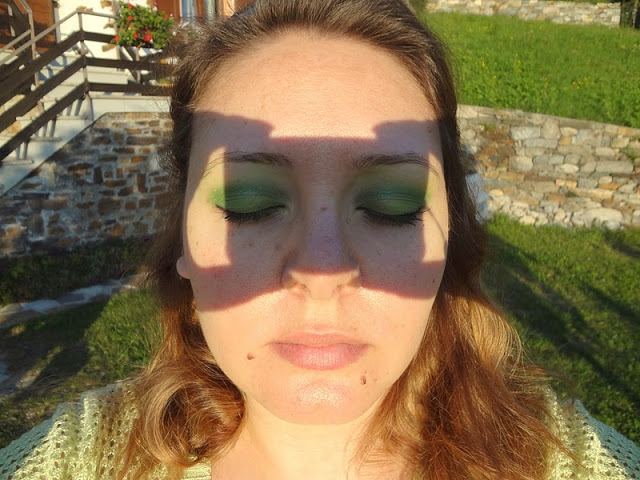 Visto che amo viaggiare leggera, mi sono portata dietro unicamente la palette Acid di Sleek (QUI), che mi sta piacendo davvero tantissimo e che sto usando praticamente tutti i giorni, e ho fatto un truccolino molto “verde” come i prati tutti intorno a me, usando entrambi i colori disponibili.