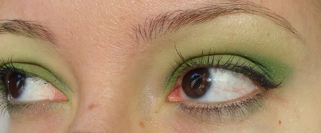Però non vorrei che pensaste che questo week io mi sia unicamente dedicata al gozzoviglio… ho anche trovato il tempo per un trucchino del giorno, detto anche fastrucco perchè è uno dei miei soliti trucchi veloci, oltre tutto non ero neanche molto attrezzata, mi mancava una matitona verde per gli occhi e il mascara verde della Pupa, che avrebbero completato il tutto per bene 🙂
