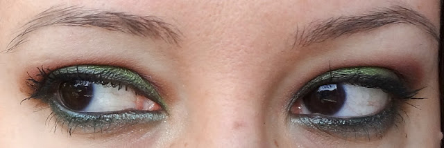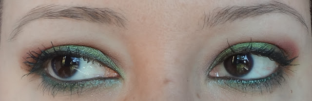 Come prima cosa ho messo la matita verde sulla palpebra mobile, poi ho steso l’ombretto verdone (che ha preso un bel effetto metallizzato grazie alla matita).