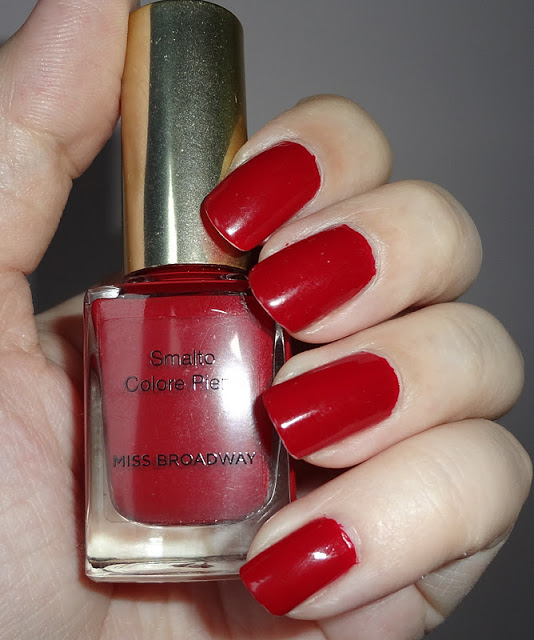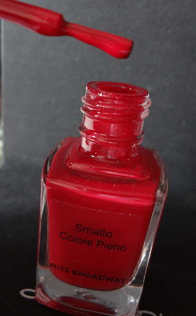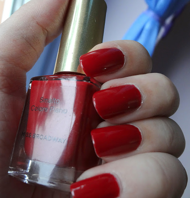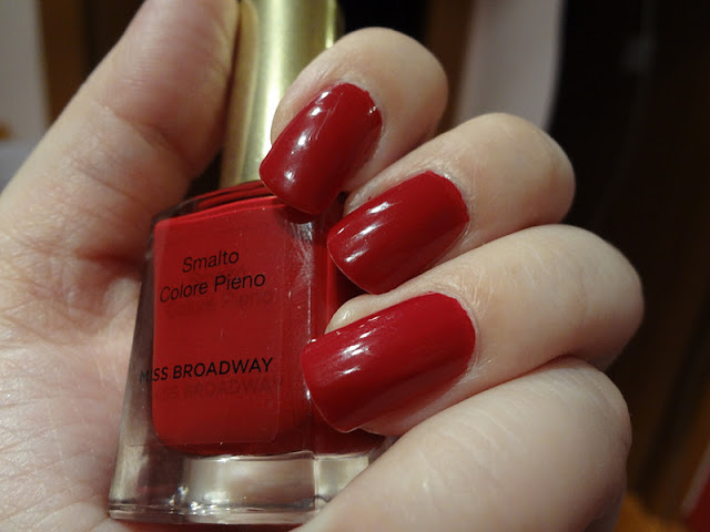 Questo colore l’ho ricevuto in omaggio all’evento Miss Broadway di cui vi ho già parlato a luglio (ok, sono stata un po’ lenta :P) e vi dirò.. un rosso rosso mi mancava! 🙂