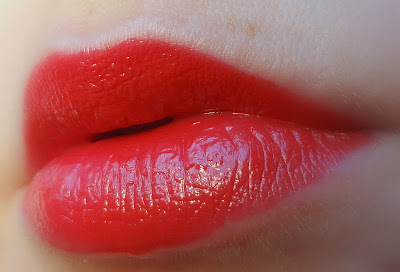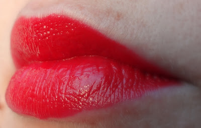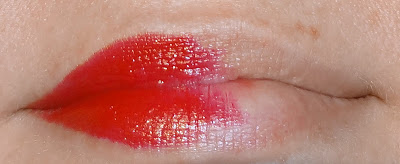 Per farvi capire l’intensità del colore, vi ho messo una foto con metà labbra naturali e metà col rossetto: