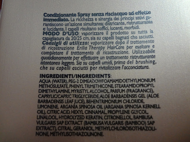 Io ho utilizzato principalmente questo spray a capelli bagnati: una cosa che ho gradito tantissimo è che non appesantisce per nulla i capelli. I miei sono piuttosto grassi alle radici, e diverse volte mi era capitato di usare prodotti che sì, non prevedevano il risciacquo, ma mi obbligavano al rilavaggio il giorno dopo, tanto sembravo unta! Invece questo spray è davvero leggero!