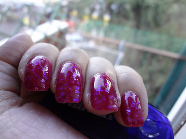 L’effetto era carino anche senza la passata finale di Opi, però ero curiosa di vedere l’effetto gelatina con dentro le paillettes 😛