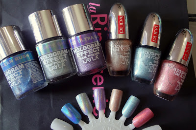 Ed eccoci finalmente al post di confronto tra smalti olografici di diverse marche: il confronto vedrà protagoniste principalmente Layla e Pupa, con una breve incursione di Opi.