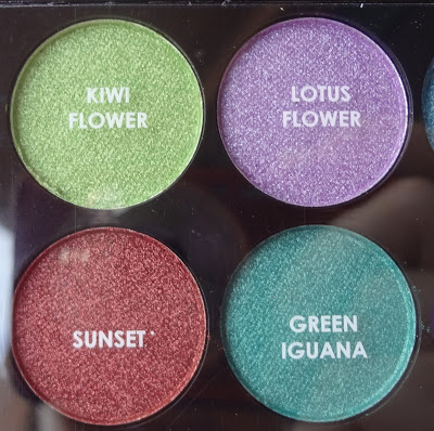 Per realizzare il trucchino, ho semplicemente messo green iguana sulla palpebra mobile, poi ho sfumato verso l’alto con sunset e ho creato una piccola codina per allungare l’occhio.