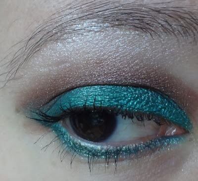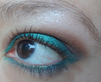 Un tocco di luce con Martini, ancora un po’ di green iguana usato al posto della matita lungo le ciglia inferiori, un po’ di mascara e il trucchino è servito 🙂