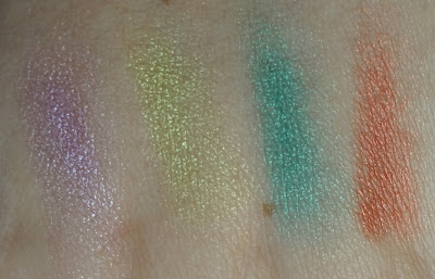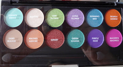 Non possiedo altre palette Sleek con cui fare confronti, però pare che Tequila Sunrise e Sunset possano essere molto simili a due colori già presenti nella palette Sunset; che Humming Bird possa essere simile a Shimmermoss di Mac, Kiwi Flower simile al pigmento Wasaby di Neve Cosmetics; che Tequila Sunrise, Martini, Green Iguana e Purple Haze siano già presenti nella palette Curaçao di Sleek; che Summer Breeze, Sand Walker, Lotus Flower, Humming Bird, Sunset, Magenta Madness e Washed ashore (quest’ultimo direi con un finish diverso) siano già presenti nella palette Monaco.