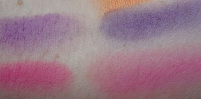 Proprio su questi ultimi due, vale a dire il viola e il fucsia, avevo il dubbio che fossero dei dupe, rispettivamente del viola già presente nella palette acid (sempre di Sleek, ve l’ho mostrata QUI) e del fucsia color pop di Pupa uscito l’anno scorso, così ho provato a metterli vicino.