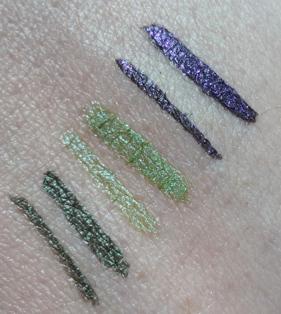 Vi mostro velocemente i 3 Super Colour eyeliner della nuova linea Active Colours, appena uscita da Kiko: ho preso il nr, 105 Verde Giada, il nr 110 Viola Regale e il nr 112 Verde Coccodrillo.