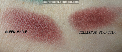 amo la palettina sleek in questione, ma diciamo che i collistar si difendono bene. sono simili, soprattutto il vinaccia è quasi uguale al maple. ma per gli amanti di un colore in particolare magari torna comodo avere un mono singolo in più.