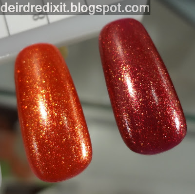 Qui sotto vediamo invece Luxurious: il tono è più arancione rossiccio, e predominano sempre i glitter dorati.