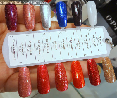 Sono stati presentati anche due nuovi smalti della linea DS, il top di gamma Opi: sono Indulgence (sinistra) e Luxurious (destra).