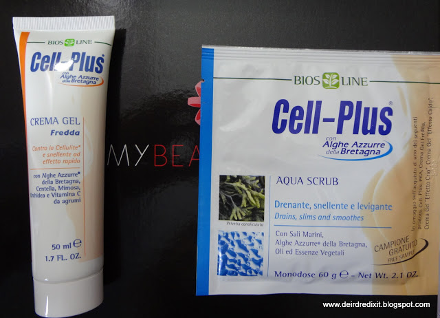 6)Si prosegue con la cura del corpo con due prodotti Biosline, azienda italiana cruelty free che si propone come legame tra l’antica tradizione erboristica e l’innovazione tecnologica: Cell-Plus crema gel fredda (minitaglia da 50 ml, valore indicativo € 5) è un trattamento quotidiano per combattere la cellulite; è ideale per le pelli più delicate o con problemi di fragilità capillare, è adatto anche in caso di inestetismi cutanei dovuti a problemi di circolazione venosa e linfatica. Alla crema si accompagna la busta monodose (sample da 60 gr) di Cell-Plus Aqua Scrub, un trattamento alle alghe azzurre, che concorrono a riequilibrare la fisiologia dei tessuti. E’ particolarmente indicato nei casi in cui alla cellulite si accompagna la ritenzione idrica.