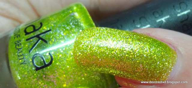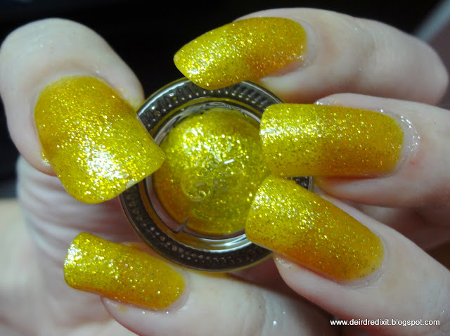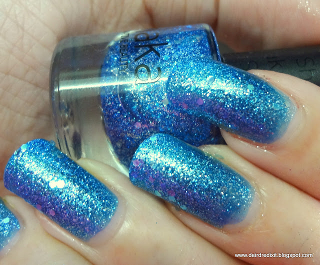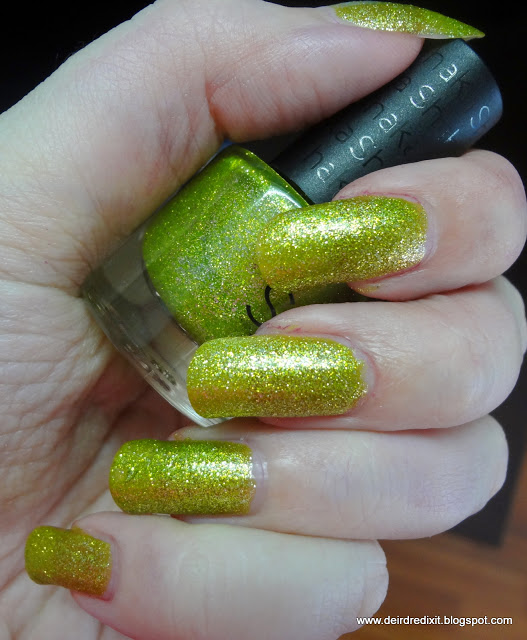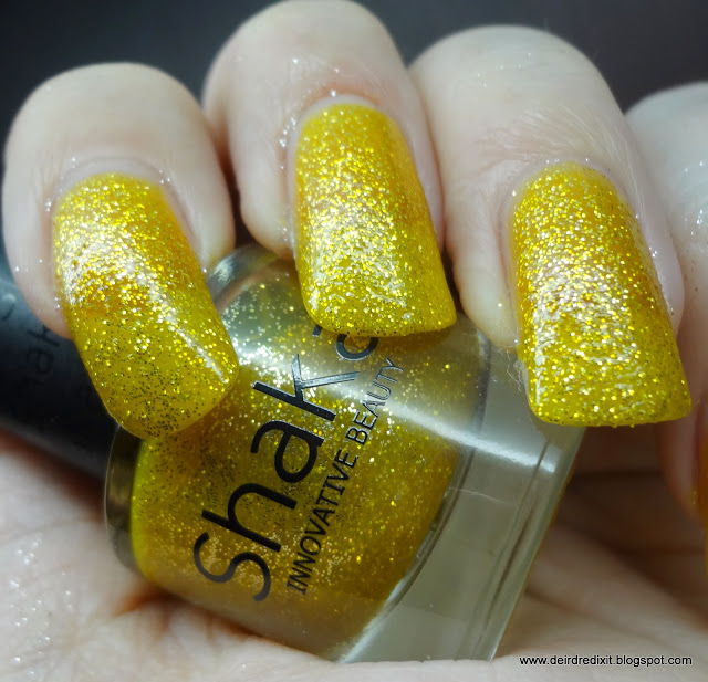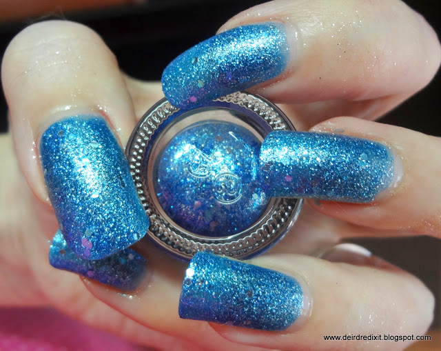 Contrariamente alle aspettative, la rimozione non è particolarmente ostica: non è necessario ricorrere alla tecnica del cartoccio, viene tutto via abbastanza tranquillamente con cotone e acetone; l’unico inconveniente è un certo spargimento di brillantini sulle dita, ma nulla che non sia risolvibile con una seconda passata di solvente.