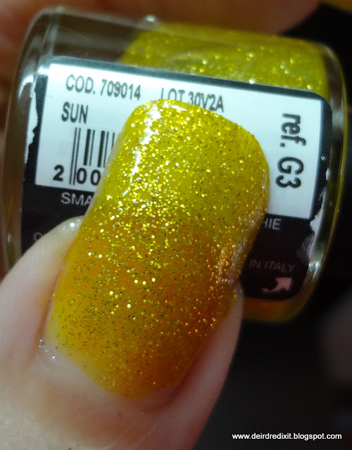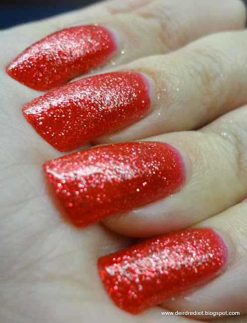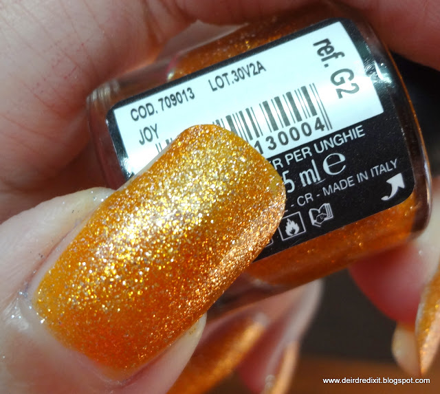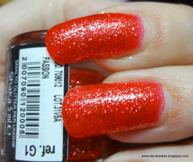 Tutti i colori presentano due tipologie di glitter, vale a dire quelli della tonalità dello smalto (rosso, arancio, verde, ecc) più quelli argentati, che ne amplificano la luminosità.