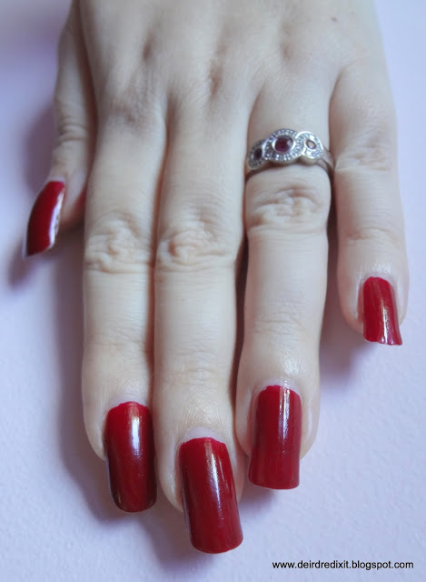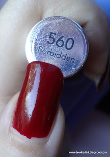 La linea si compone di 9 tonalità, tra cui il pesca, l’azzurro, il blu scuro, il grigio piombo e lo smeraldo, ma il colore che vedrete oggi è Forbidden, un bel rosso scuro crème, molto lucido e senza brillantini o perlescenze.. in pratica, un classico intramontabile.
