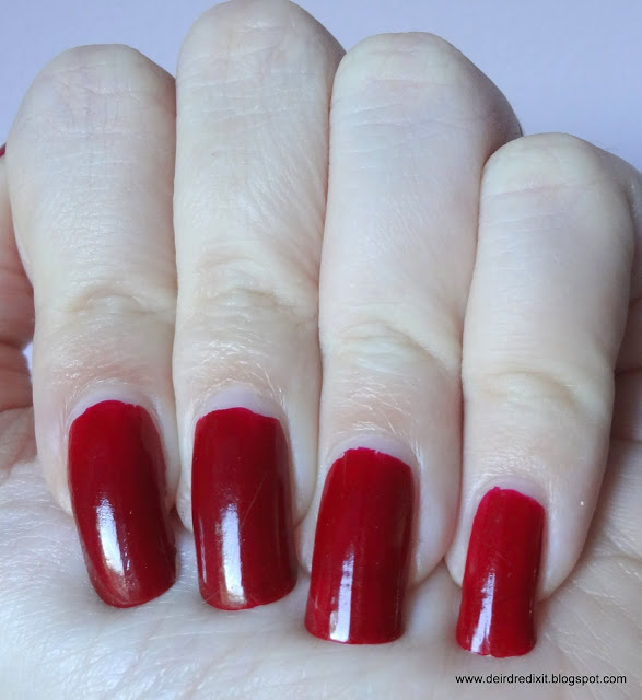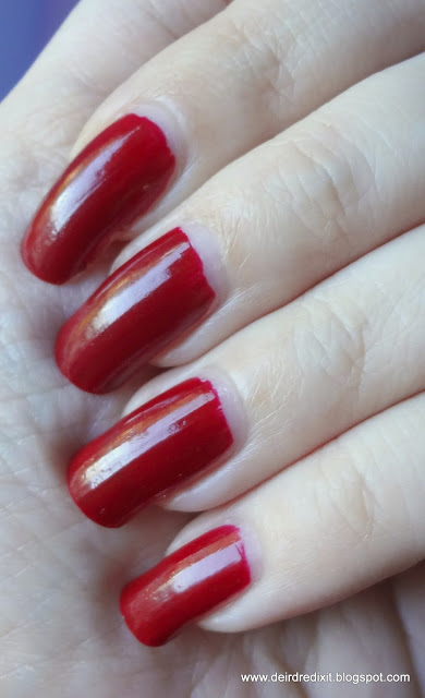 C’è da dire che, almeno in questo caso, il colore steso è un po’ diverso rispetto a quello che traspare dalla boccetta, infatti è più chiaro e si vede chiaramente che è rosso, mentre nella boccetta sembra tendere più al vinaccia.