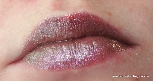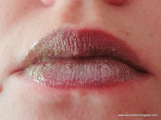 Nelle foto seguenti secondo me si vede bene il riflesso verde oro: sia chiaro, si tratta di un riflesso, nessuno guardandovi penserà che abbiate la labbra verdi.. almeno spero 😛