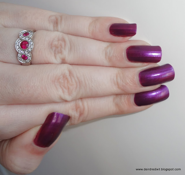 Diciamocelo, non è un colore mai visto prima, ma si tratta comunque di un bellissimo punto di viola shimmer, molto luminoso, dal sottotono rosso e io ci vedo pure dei riflessi sul blu.