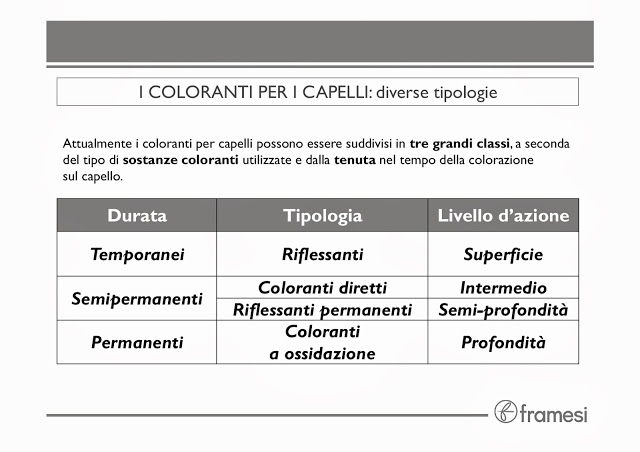 Adesso entriamo nel vivo con le varie tipologie di coloranti, distinguibili in base alla durata e al livello di profondità su cui lavora il colore: