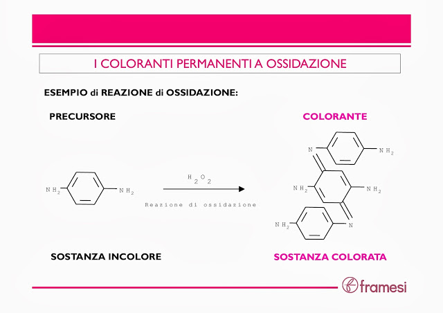 Le tinture ad ossidazione contengono i cosiddetti “precursori del colorante” che si trasformano in coloranti grazie alla reazione di ossidazione con l’ossidante, che si ha al momento della miscelazione.