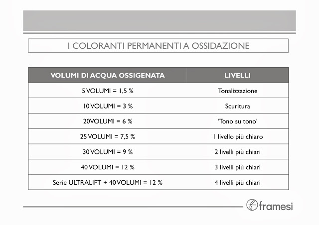 A questo proposito trovo molto utili queste tabelline con la classificazione dei livelli di colore e le schiariture che si possono ottenere: