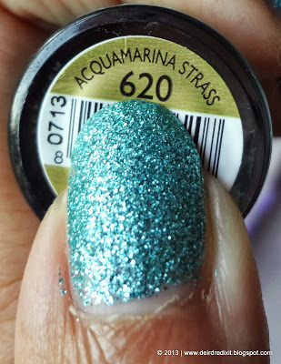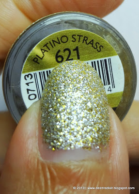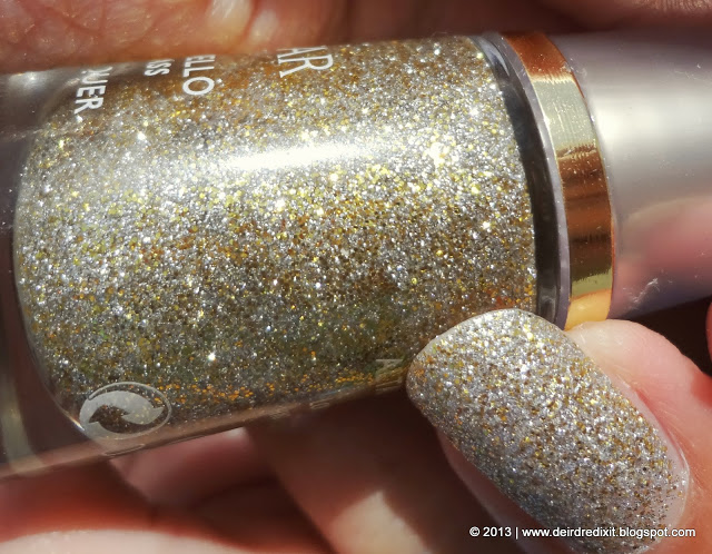 Qui il nome trae un po’ in inganno, infatti ai finissimi glitter argentati si mescolano glitter un po’ più grandi color oro: l’effetto finale mi ricorda molto la sabbia, voi che ne dite?