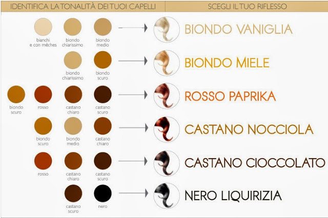 Io ho in capelli biondo scuro e penso che se dovessi provare un prodotto simile, sceglierei qualcosa di vicino al mio colore ma meglio, qualcosa che ravvivasse i riflessi e li rendesse belli luminosi, magari anche approfittando del fatto che i capelli sono più chiari dopo il sole estivo, opterei quindi per un biondo miele 🙂