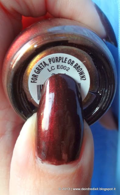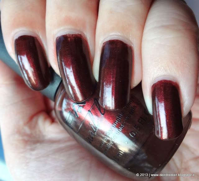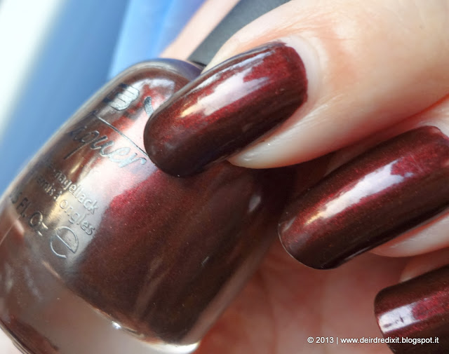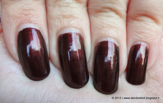 Belloo questo smalto! Adoro sia gli smalti marroni che i bordeaux e questo ha dei riflessi spettacolari che lo fanno sembrare talvolta l'uno talvolta l'altro! …devo procurarmelo 🙂