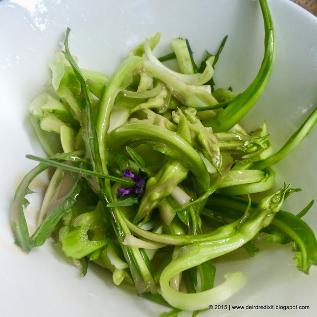 Pur essendo molto tentata anche dai secondi (sì, caro il mio Baccalà con crema di fave, cicorino e salsa di peperoni rossi, la prossima volta sarai mio!), stavolta ho preferito optare per un’Insalata di puntarelle e salsa alle alici,