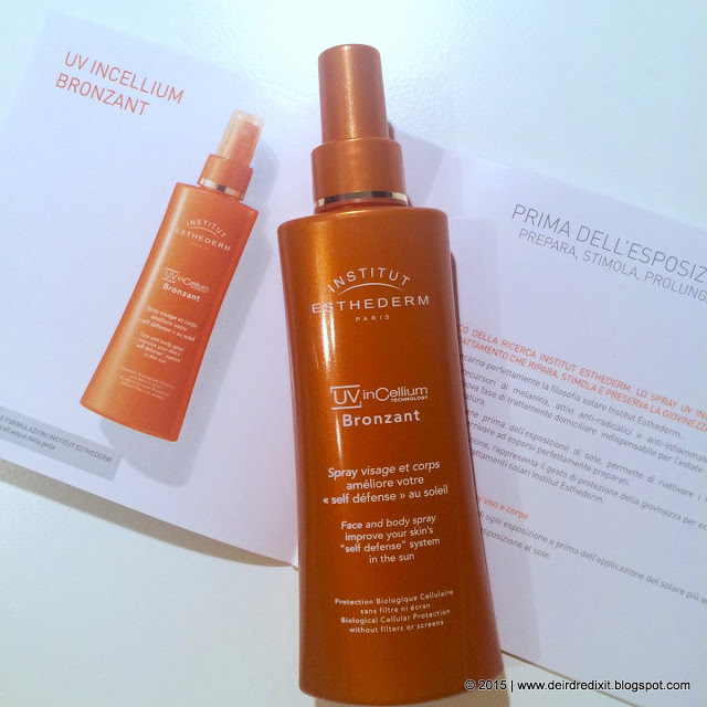 Dopo essermi sciacquata – in un box doccia che vorrei avere a casa! – il trattamento è proseguito con l’applicazione dello spray UV inCellium Bronzant: si tratta di uno spray da usare su viso e corpo ed è preparatorio all’esposizione solare.