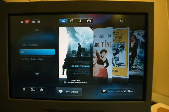 Ogni posto ha un moderno sistema di intrattenimento individuale con schermo touch, sono disponibili parecchi film tra cui scegliere, molti dei quali doppiati in italiano, il che è abbastanza una rarità su altri voli.