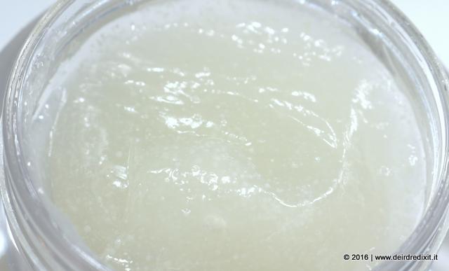 La texture è davvero gradevole: si tratta di un gel leggero, fresco, al cui interno sono contenute microcapsule di vitamine. Sulla pelle l’effetto è occlusivo, nel senso che è simile a quello delle maschere in tessuto, e quindi i principi attivi riescono ad essere assorbiti in profondità.
