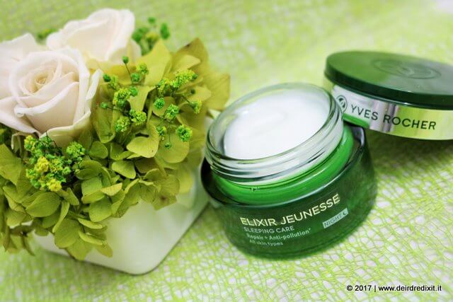 Come vi dicevo, non conosco molto Yves Rocher ma ultimamente la pubblicità della sua nuova linea Elixir Jeunesse ha letteralmente tappezzato Milano e non vi nego che mi ha incuriosita, in particolar modo il trattamento notte Sleeping Care: amo molto questa tipologia di prodotti e infatti per un bel po’ di tempo ho usato la Ibuki beauty sleeping mask di Shiseido ma dopo mesi e mesi un po’ di voglia di cambiare c’era e a furia di vedere per ogni dove quella di Yves Rocher in formato cartellone, ci stavo facendo un pensierino. E poi mi piacciono i pack verdi!