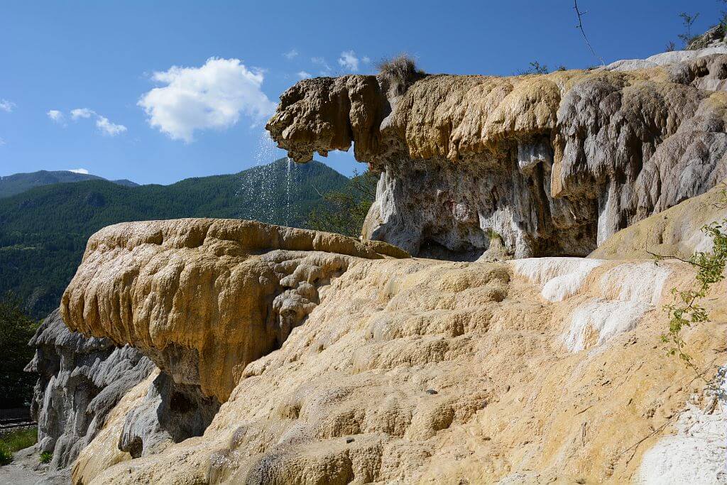 Proprio in questo ambiente si trova l’attrazione turistica principale della zona: la Fontaine Pétrifiante, una fontana “pietrificante”. Il nome rispecchia una delle particolarissime caratteristiche dell’acqua che sgorga da questa fonte: è iperminerale, ricca di calcare, carbonato di calcio e di magnesio, oltre che di sale; è proprio quest’ultimo che, precipitando e inglobando detriti di vario genere, nel corso dei secoli si è solidificato in tufo e, accumulandosi, ha reso questa fonte un vero e proprio monumento naturale, segnalato e protetto dall’Unione Europea.
